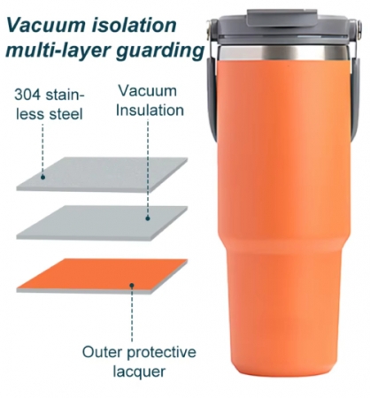 2.Vacuum Insulation:Featuring a double-layered vacuum design, our double-layer insulated cup maintains the temperature of hot beverages for hours and keeps cold drinks chilled, providing you with the perfect sip anytime.