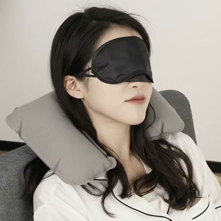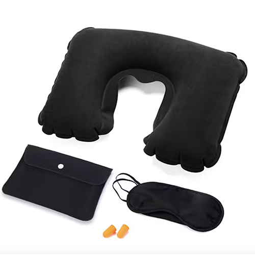 - Inflatable Neck Pillow with Eye Mask and Ear Plugs Set